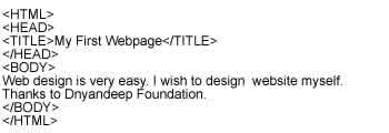 तुम्हाला वेबपेजमध्ये Web design is very easy. I wish to design website myself. Thanks to Dnyandeep Foundation. असा मजकूर दिसेल. व My First Webpage हे शीर्षक वरच्या कोपर्यात दिसेल.