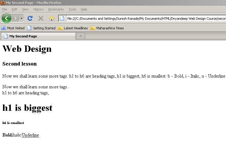 पहिला धडा तुम्ही प्रत्यक्ष करून पाहिला असेल तर तुम्ही टाईप केल्याप्रमाणे वेबपेज वर का दिसत नाही असा प्रश्न पडला असेल.
