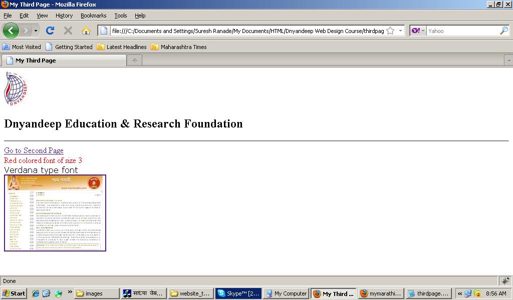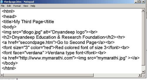 आता नोटपॅडमध्ये खाली दाखविल्याप्रमाणे टाईप करून तिसरे पान thirdpage.htm या नावाने सेव्ह करा.