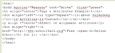 १. body, div,span, align, li टॅग आणि attributes चे उदाहरण
