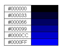 RGB साठी ०,५१,१०२,१५३,२०४,२५५ व हेक्झाडेसिबल पद्धतीसाठी 00,33,66,99,CC,FF.
