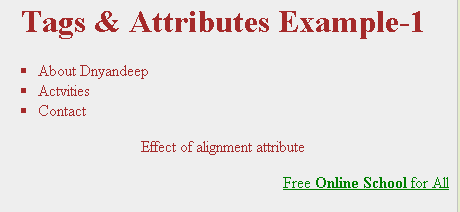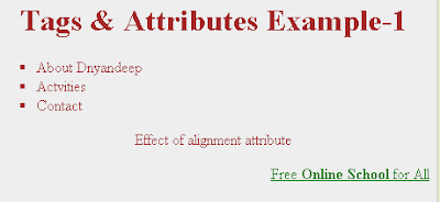 १. body, div,span, align, li टॅग आणि attributes चे उदाहरण