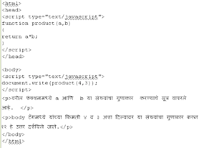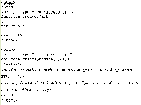 जावास्क्रिप्टचा उपयोग करून अंकगणितातील उदाहरणे सोडविता येतात. खालील उदाहरणात गुणाकाराचे फंक्शन कसे वापरावयाचे ते दाखविले आहे.