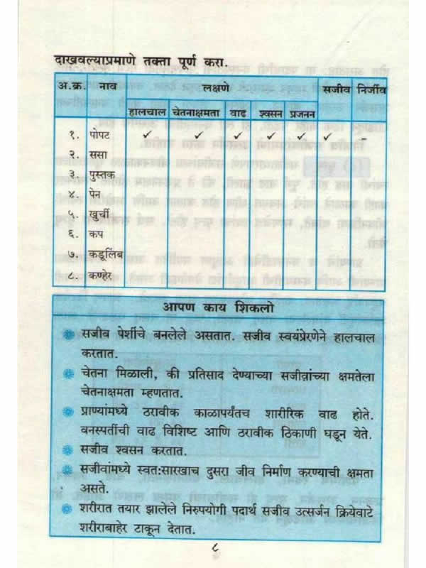 बालभारती सामान्यविज्ञान इयत्ता सहावी